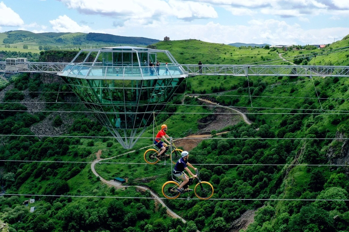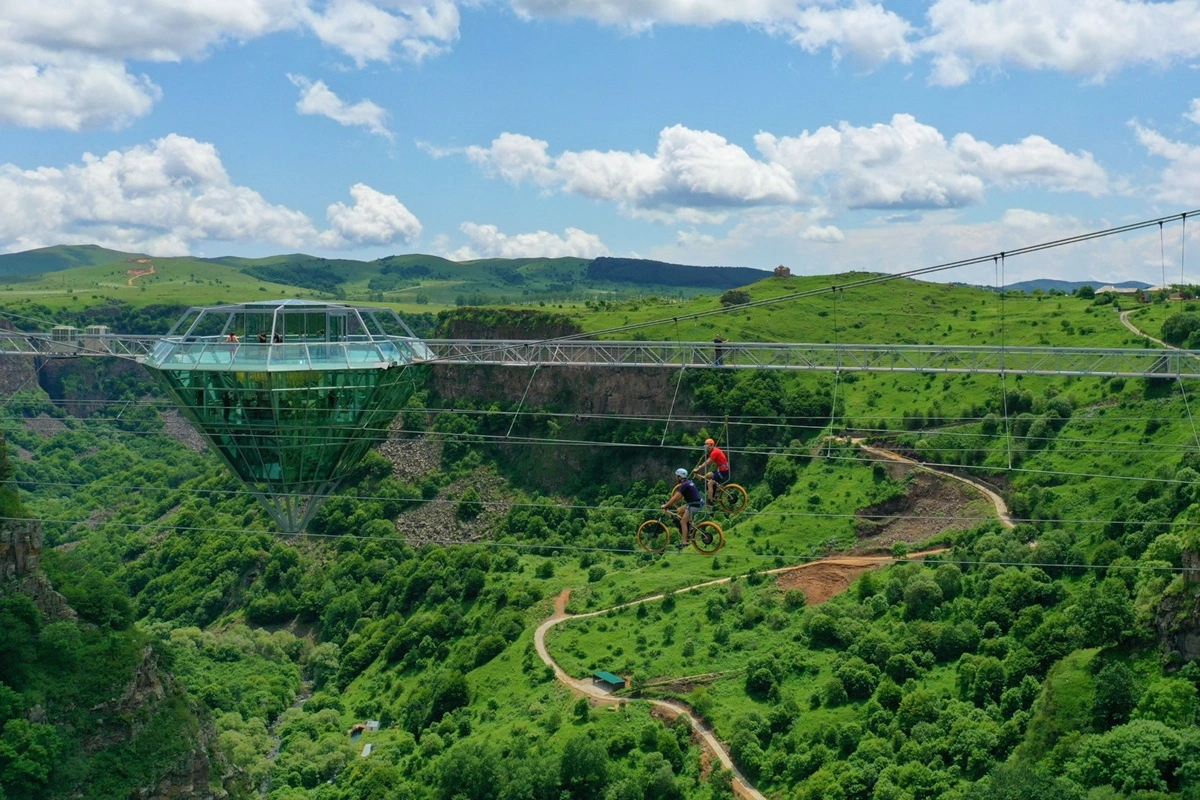 This day tour packs three different worlds into one adventure from Tbilisi. It starts with a drive through open landscapes to Tsalka Canyon, where the newly built Diamond Bridge stretches above dramatic cliffs and offers views that don’t need editing. The walkways are not for the faint of heart—but perfect for those who want a fresh perspective on Georgia’s wild side.